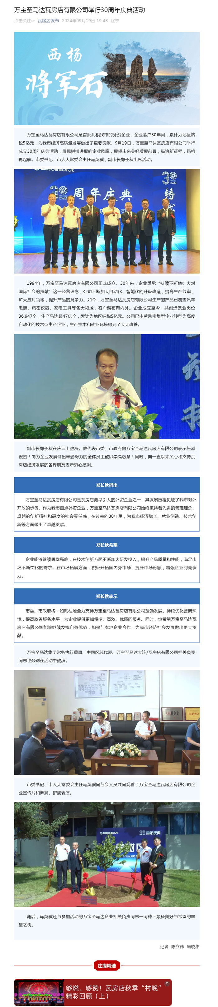 萬寶至馬達(dá)瓦房店有限公司舉行30周年慶典活動